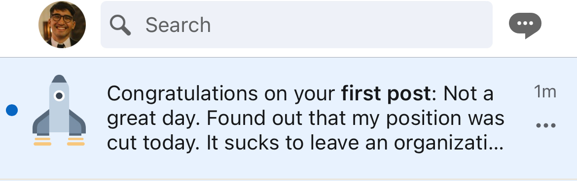 On the other hand, people that you know are an amazing resource for getting a job. For being such a hilariously weird platform, the LinkedIn post of shame was easily the best way to broadcast to a wide number of close-enough relations that you need a job. My cringeworthy post put me in contact with people who could vouch for me and immediately got me in contact with hiring managers and HR.